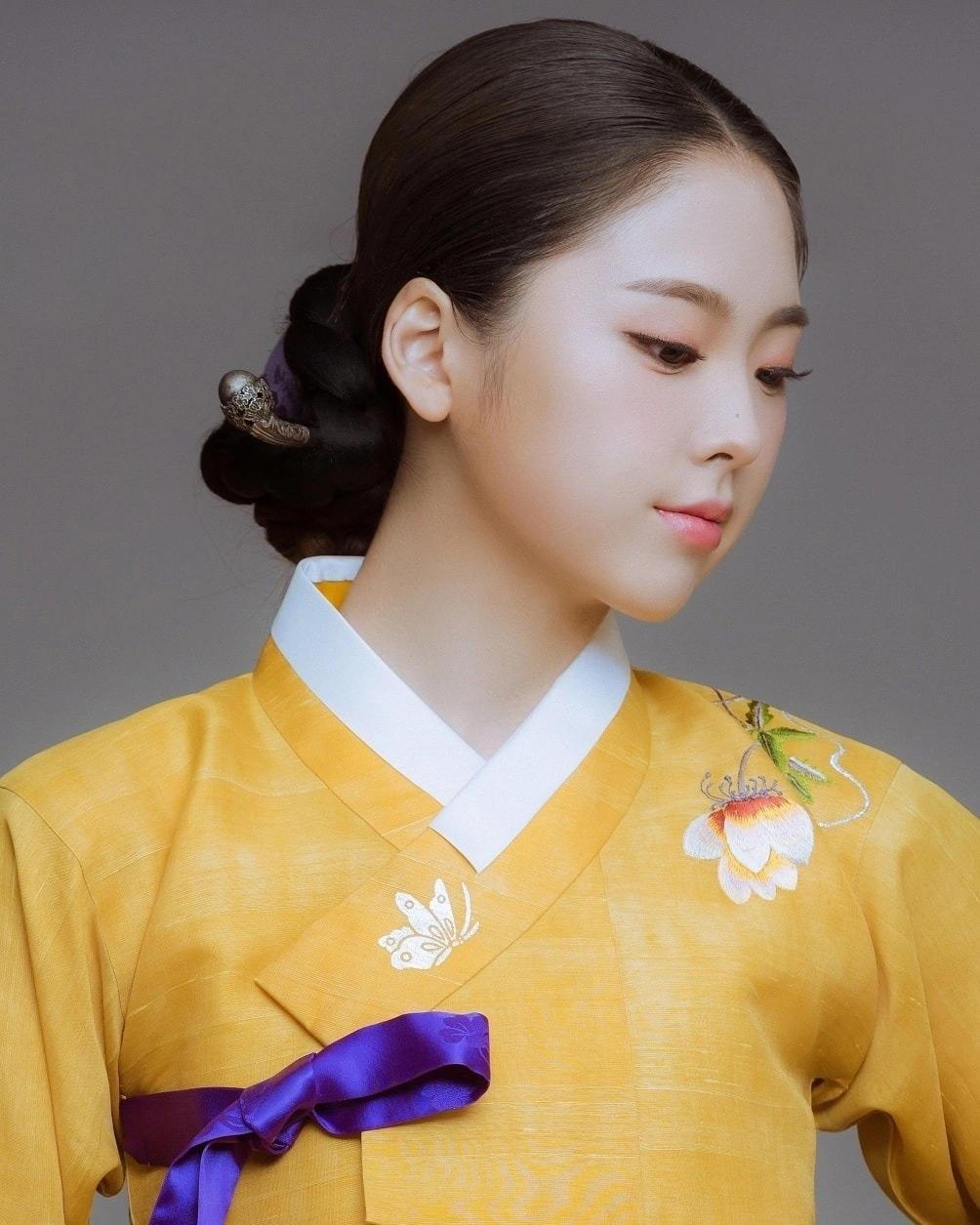 부산 메이크업샵 뭉에서 받은 한복 프로필샷. 촉촉한 가을 뮤트 무화과 메이크업이 특별한 골드 터치!
